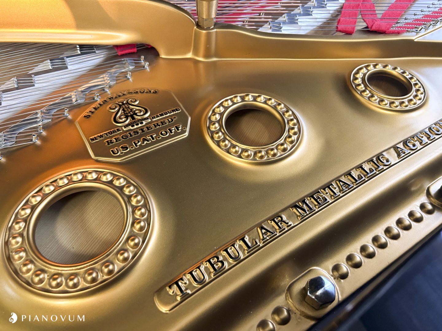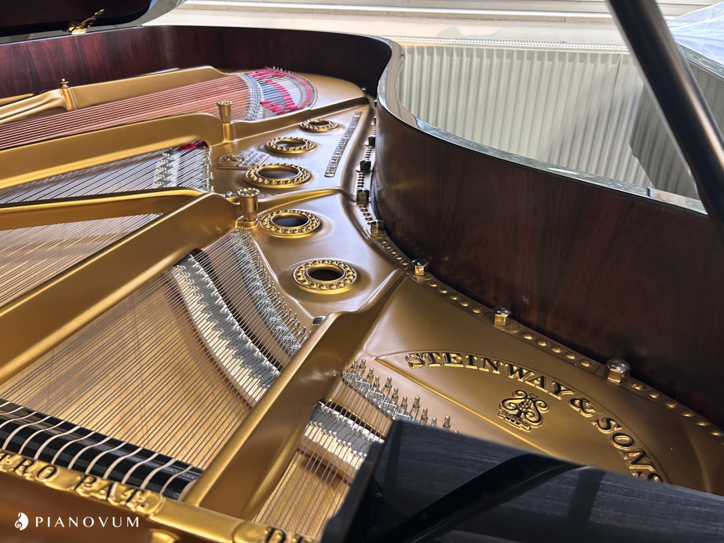 Der Klang ist sehr ausgewogen über alle Register, zeigt seine Stärken durch eine enorme Farbtiefe, einen langen Ton und aussergewöhnlichen Facettenreichtum. Die Spielschwere wurde dynamisch ausgewogen bei einer Steinway-typischen Tastenschwere von ca 48-50g, der Klang lässt sich kontrolliert modulieren. Die Spielart ist dabei stets präzise und in allen Dynamikstufen kontrollierbar.