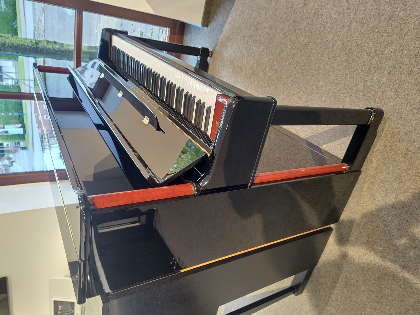 Limitiertes Designermodell von Schimmel! In Zusammenarbeit mit dem Pianisten Mario Ratko Delorko enstand in den 90er Jahren eine limitierte Auflage dieses Modells. Zierelemente aus Bubingaholz runden die Optik des wunderschönen Modells ab. Kleinere Messingappliaktionen unterstreichen die Wertigkeit. Auf der linken Zierbacke ist die Signatur des Pianisten und die Editionsnummer (295/500) zu finden.