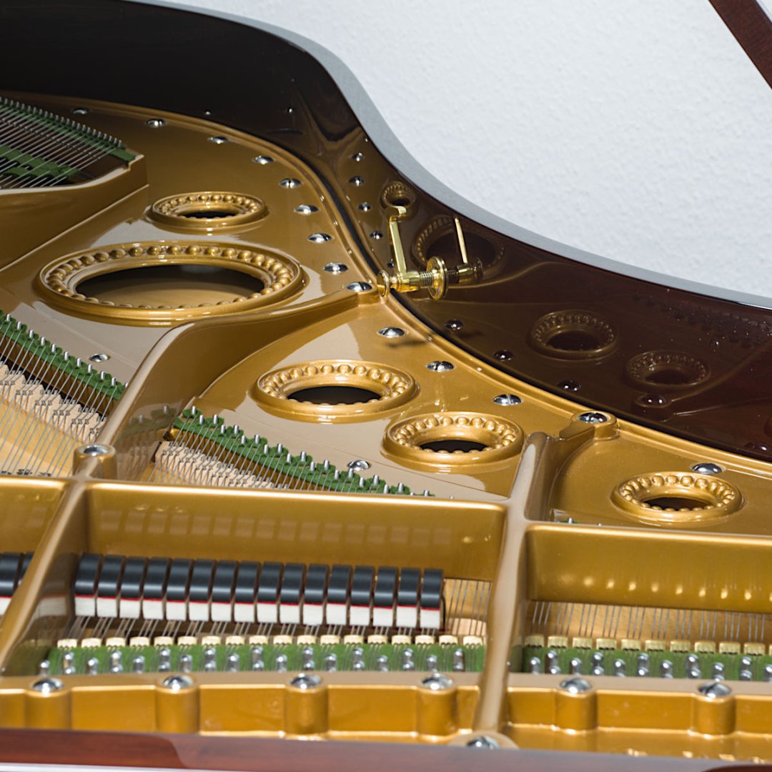 Aufgrund seiner Größe erreicht dieser Bechstein Flügel einen vollen Klang, der typisch Bechstein nicht zu metallisch, vielmehr eher romantisch ist.