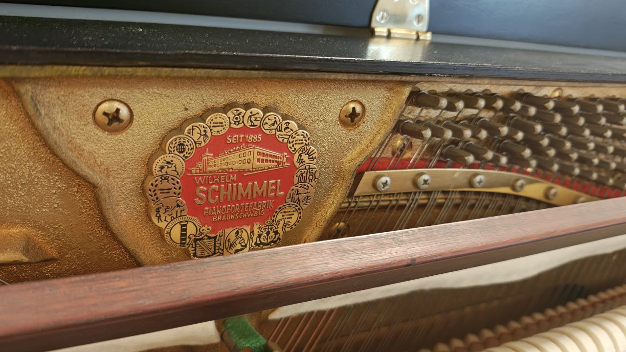 Schimmel 109-M in edlem Schwarz matt, fachgerecht in unserer Meisterwerkstatt überarbeitet. Ausgestattet mit neuen ABEL-Hammerköpfen überzeugt dieses Klavier durch einen kraftvollen, ausgewogenen Klang mit schöner Tragfähigkeit. Das durchgehende Notenpult unterstreicht die klare Linienführung und sorgt für eine großzügige, stabile Auflagefläche. Ein kompaktes Instrument mit überraschend viel Klangvolumen.