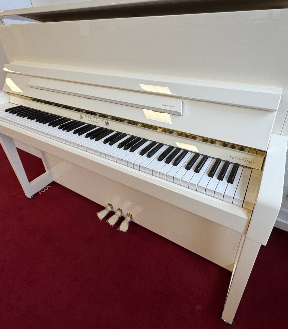 Das SCHIMMEL W 114 Tradition überzeugt mit einem vollen, großen Klang, einer angenehmen Spielbarkeit und einem zeitlos-eleganten Design. Die weiß polierte Ausführung wirkt stilvoll und dezent zugleich – klassisches Understatement, ohne Kompromisse bei Klang oder Qualität.