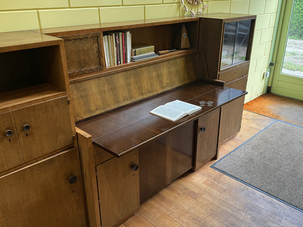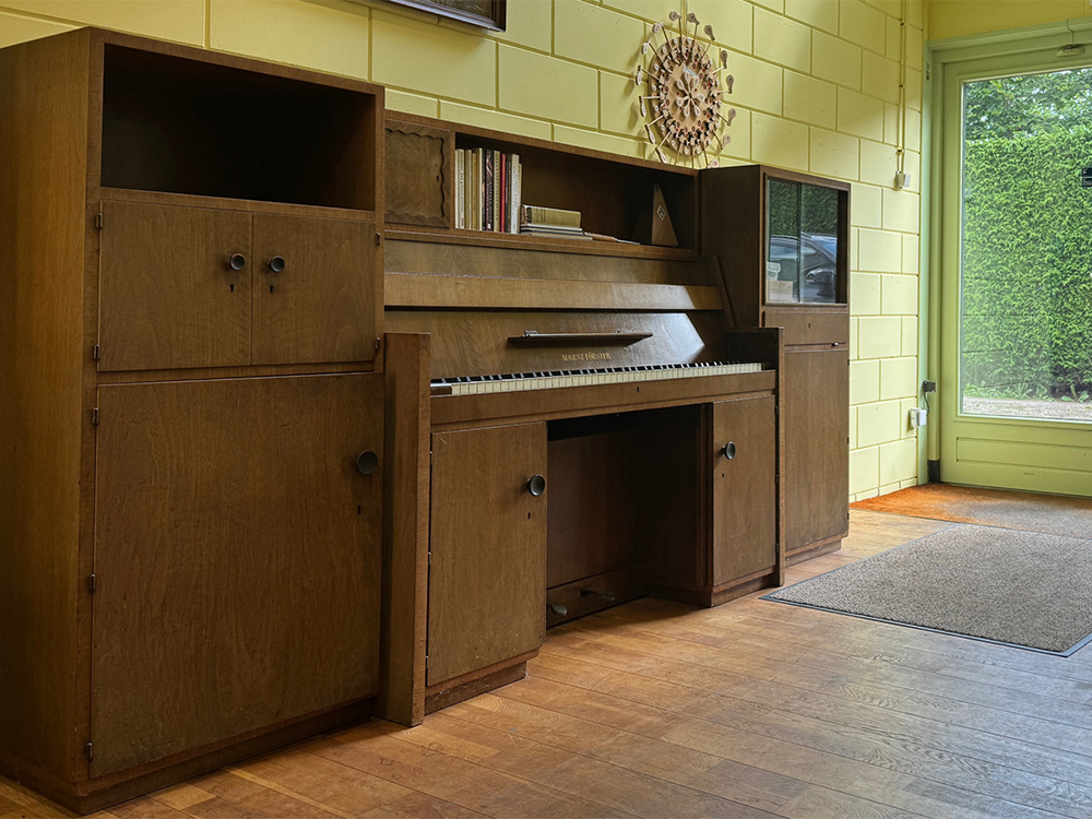De August Förster piano-ameublement. Een zeer zeldzaam model piano die makkelijk te veranderen is in een bureau. Dit meubel heeft in 1954 op een tentoonstelling gestaan en is uiteindelijk aan een koper verkocht die dit instrument in deze uitvoering per sé wilde hebben. Waarschijnlijk de enige uitvoering ooit gemaakt. De pianobouwer (Petrof) wilde met deze uitvoering laten zien waartoe ze in staat waren. Het instrument is zoals gezegd gebouwd in 1954 en nog helemaal origineel. Natuurlijk is de kast flink verkleurd wat normaal is gezien de leeftijd. Toch heeft de piano, zoals deze er nu uitziet, veel karakter en is een genot om naar te kijken. De August Förster piano speelt en klinkt vanzelfsprekend ook nog prima. Een unieke kans om iets zeldzaams in bezit te krijgen. Kom gerust eens langs om de August Förster piano-ameublement eens rustig te bekijken en te bespelen.