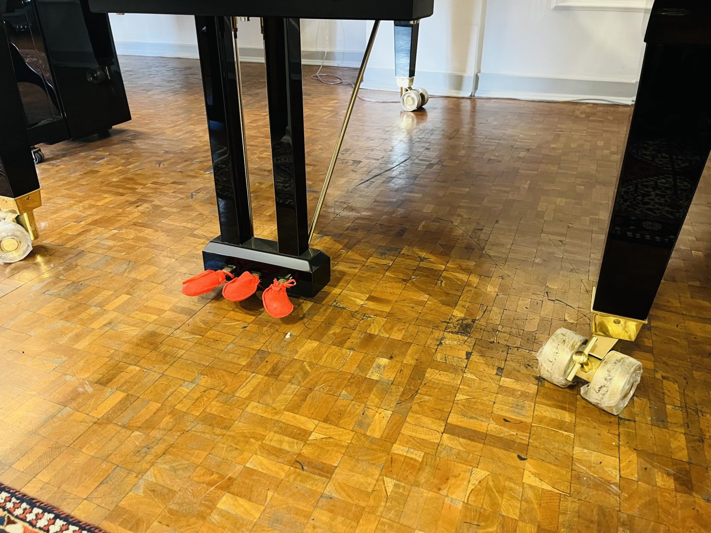 Zur Ausstattung gehören ein Sostenutopedal, das differenziertes Spiel und feinste Klangabstufungen ermöglicht, sowie professionelle Konzertrollen mit Feststellbremse, die den Flügel auch auf der Bühne sicher beweglich und standfest machen. Der Flügel verfügt außerdem über Holzhalbtöne.